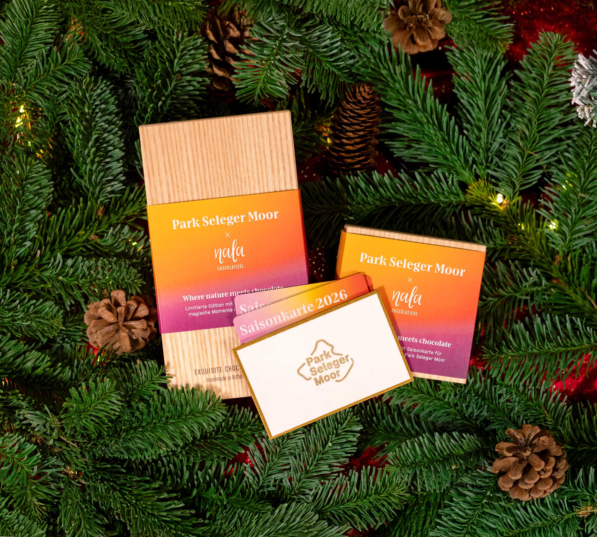 Verschenken Sie ein Jahr Natur und eine Hand voll schokoladiger Glücksmomente. Mit der exklusiven Weihnachtsedition von Nala Chocolatière und dem Park Seleger Moor erhalten Sie feinste handgemachte Pralinen und eine Saisonkarte für den Park Seleger Moor.